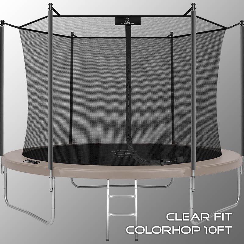 Каркасный батут Clear Fit серии ColorHop доступен в четырех цветах: желтый, оранжевый, серый и зеленый. Эта серия отличается комфортом и надежностью. Прочная рама из качественных материалов и надежная защитная сетка, закрепленная на прыжковом полотне и дополненная защитой входа, обеспечивают безопасность и удовольствие от тренировок. Батуты ColorHop — это увлекательное и полезное развлечение для всей семьи. В комплект входят: батут, верхняя защитная сетка, защитный мат и лестница, что делает его идеальным для использования на даче. Размер батута 10 футов (диаметр прыжковой поверхности 2.62 м) позволяет комфортно заниматься взрослым и веселиться детям любого возраста. Верхняя защитная сеть предотвращает падения, усиленная молния и дополнительные элементы входа защищают малышей от случайного проникновения или падения. Оцинкованная стальная рама, качественные комплектующие и погодостойкие метизы обеспечивают долговечность и устойчивость батута, защищая его от коррозии. Максимальный вес пользователя — до 160 кг.