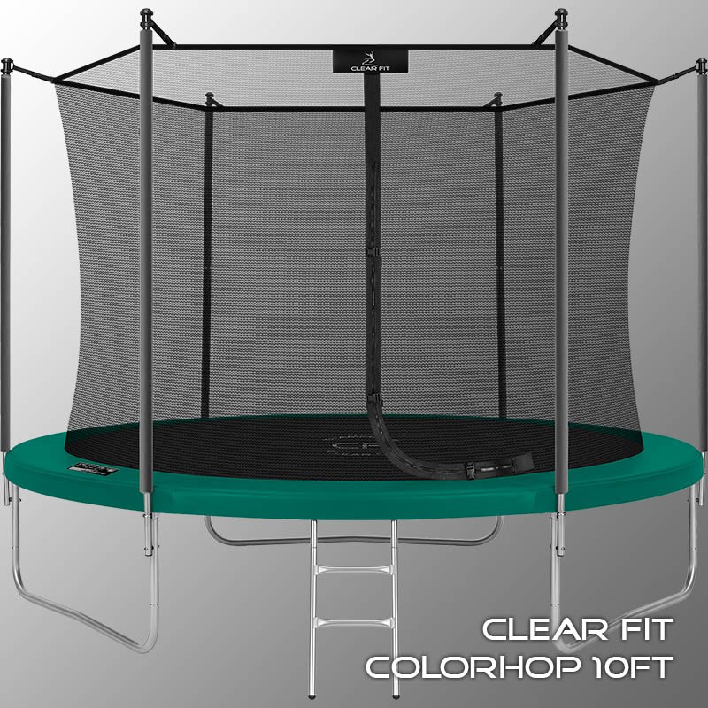 Каркасный батут Clear Fit серии ColorHop доступен в четырех цветах: желтый, оранжевый, серый и зеленый. Эта серия отличается комфортом и надежностью. Прочная рама из качественных материалов и надежная защитная сетка, закрепленная на прыжковом полотне и дополненная защитой входа, обеспечивают безопасность и удовольствие от тренировок. Батуты ColorHop — это увлекательное и полезное развлечение для всей семьи. В комплект входят: батут, верхняя защитная сетка, защитный мат и лестница, что делает его идеальным для использования на даче. Размер батута 10 футов (диаметр прыжковой поверхности 2.62 м) позволяет комфортно заниматься взрослым и веселиться детям любого возраста. Верхняя защитная сеть предотвращает падения, усиленная молния и дополнительные элементы входа защищают малышей от случайного проникновения или падения. Оцинкованная стальная рама, качественные комплектующие и погодостойкие метизы обеспечивают долговечность и устойчивость батута, защищая его от коррозии. Максимальный вес пользователя — до 160 кг.