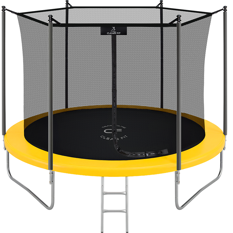 Каркасный батут Clear Fit серии ColorHop доступен в четырех цветах: желтый, оранжевый, серый и зеленый. Эта серия отличается комфортом и надежностью. Прочная рама из качественных материалов и надежная защитная сетка, закрепленная на прыжковом полотне и дополненная защитой входа, обеспечивают безопасность и удовольствие от тренировок. Батуты ColorHop — это увлекательное и полезное развлечение для всей семьи. В комплект входят: батут, верхняя защитная сетка, защитный мат и лестница, что делает его идеальным для использования на даче. Размер батута 10 футов (диаметр прыжковой поверхности 2.62 м) позволяет комфортно заниматься взрослым и веселиться детям любого возраста. Верхняя защитная сеть предотвращает падения, усиленная молния и дополнительные элементы входа защищают малышей от случайного проникновения или падения. Оцинкованная стальная рама, качественные комплектующие и погодостойкие метизы обеспечивают долговечность и устойчивость батута, защищая его от коррозии. Максимальный вес пользователя — до 160 кг.