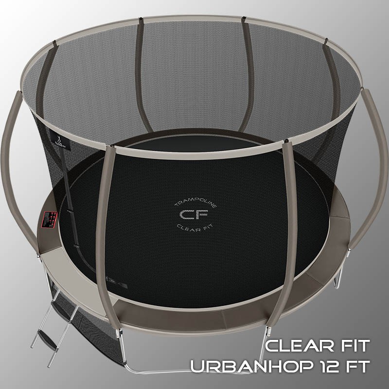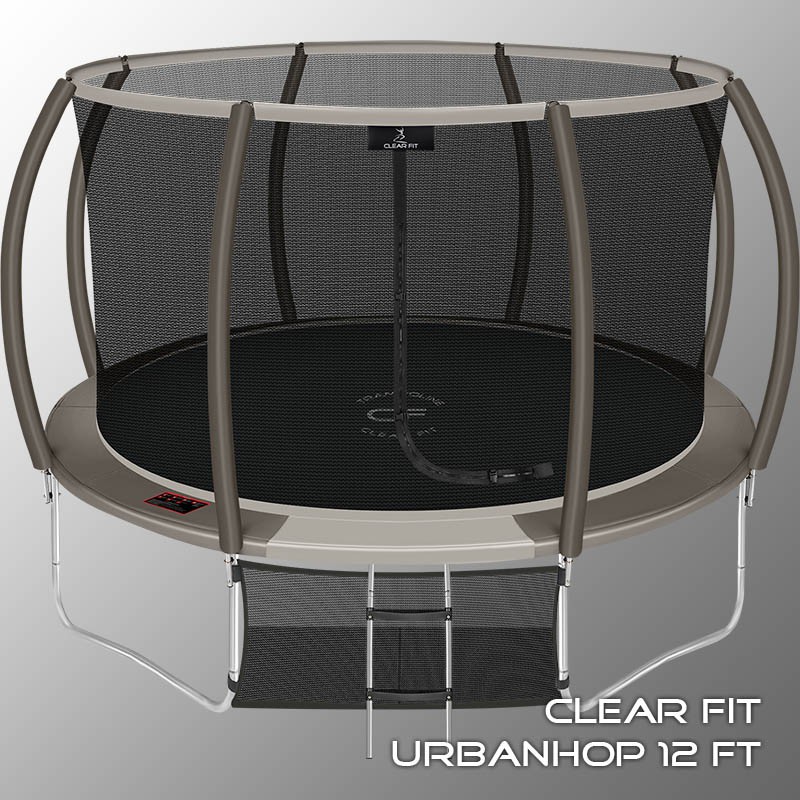 В 2026 году представлена обновленная линейка с улучшенной конструкцией каркаса. Усиление достигнуто за счет использования прочных Т-образных кронштейнов из металла толщиной 1.9 мм. Кроме того, в комплектацию добавлен карман для обуви. Каркасный батут с защитной сеткой Clear Fit серии UrbanHop — отличаются комфортом и надежностью. Надежная рама из качественных комплектующих, прочная защитная сеть снабжена прямым креплением к прыжковому полотну и дополнительной защитой входа, наверху каркасное жесткое крепление, сеть не провисает и не слетает во время тренировок. Увлекательный, полезный и безопасный тренажер для всей семьи. Батуты серии UrbanHop 10Ft, 12Ft, 14Ft и 16Ft поставляются в оптимальной для комфорта и безопасности комплектации: батут, верхняя защитная сеть, защитный мат, лестница и карман для обуви. Батут размером в 12 футов с прыжковой поверхностью 3.21 м идеально подходит для пользователей любого возраста, размеры полотна позволяют комфортно тренироваться взрослым и развлекаться детям, включая подростков. Верхняя защитная сеть оберегает от падений, усиленная молния и дополнительная защита входа уберегут малышей от случайного входа или падения. Надежный каркас из оцинкованной стали, качественные комплектующие и погодостойкие гальванизированные метизы рамы делает батут безопасным, устойчивым, надежным, гарантируют полную защиту от коррозии и долгий срок службы. Максимальный вес пользователя батута UrbanHop 12Ft — до 200 кг.