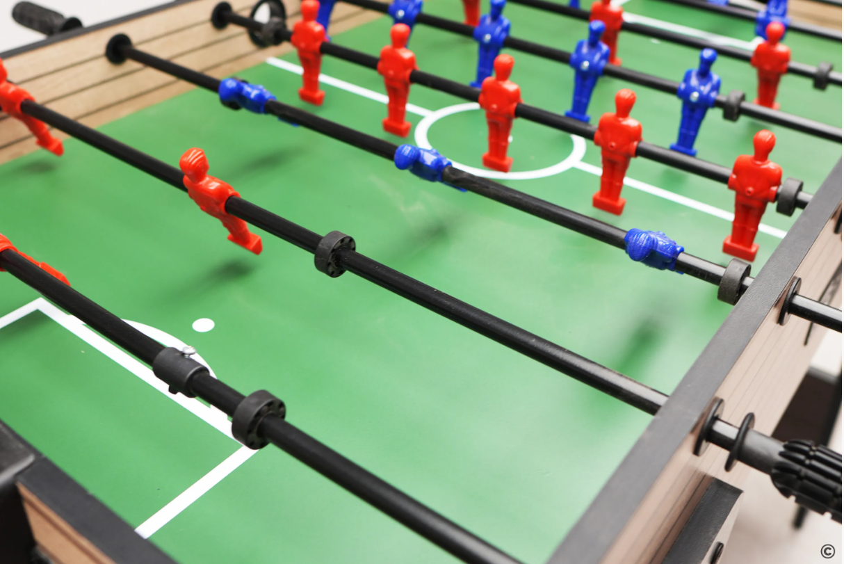 - Штанги управления  с резиновыми рукоятками вращаются плавно и легко, обеспечивая полный контроль над игроками и точность передач и ударов.