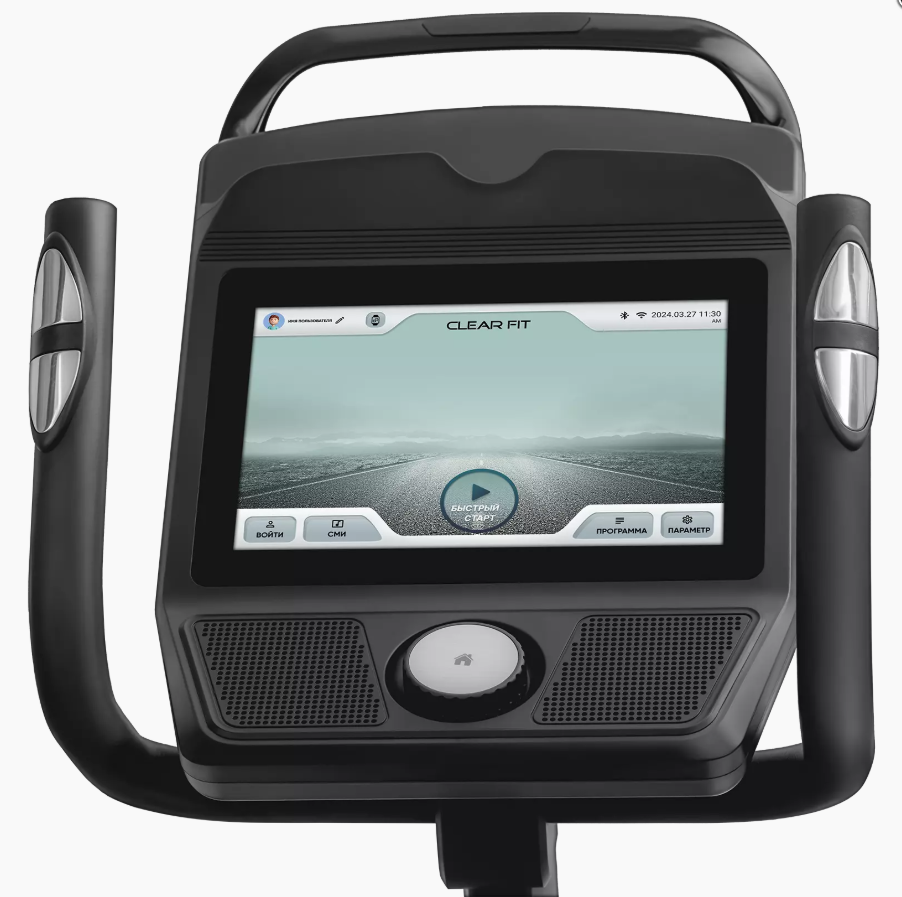 Высокотехнологичная консоль с большим цветным TFT-дисплеем 10” информативно отображает все параметры тренировки, полностью русифицирован. Интуитивно понятная навигация при помощи шайбы управления и Touch Screen отвечают за простое управление тренировкой. Программный пакет включает виртуальный ландшафт и целевые программы, в общей сложности 33 программы: пульсозависимые, пользовательские, предустановленные и фитнес-тест. TFT консоль подключается к сети Internet при помощи Wi-Fi соединения и оснащена встроенными приложениями: YоuТubе / Fасеbоok* / Netflix / Spotify / Prime Video / Instаgrаm* / Disney+. Воспроизведение музыки возможно при помощи Jack 3.5 мм и при помощи Bluetooth подключения. Вывод аудио сигналов осуществляется при помощи встроенных колонок, проводных и беспроводных наушников. Технология MirrorLink позволяет транслировать изображение Вашего гаджета на консоль тренажера. Встроенный USB порт отвечает за зарядку Вашего гаджета. Доступна интеграция полного графического изображения c дополнительными функциями на устройства iOS и Android (поддерживаются приложения Kinomap и Zwift), для подключения консоли используется встроенный Bluetooth-модуль.