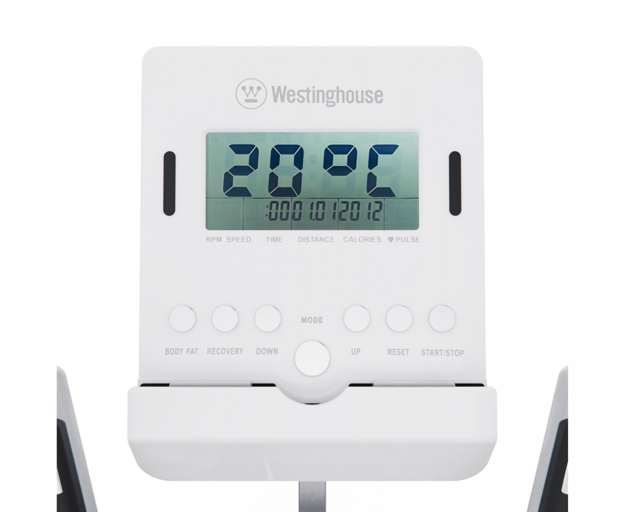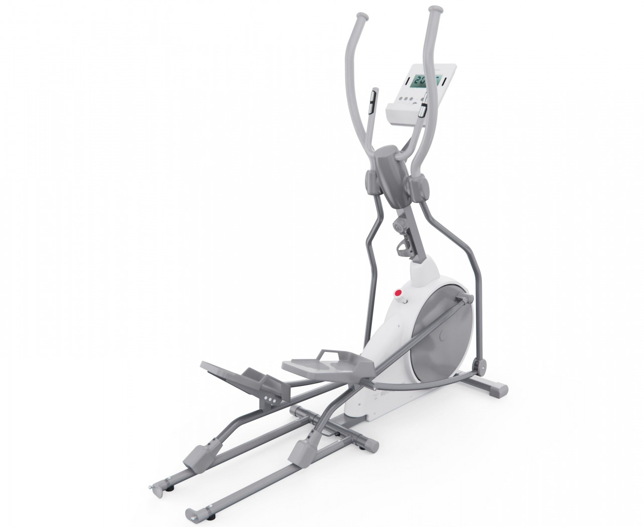 Все данные отображаются на LCD-дисплее, где вы можете отслеживать ключевые параметры: время, дистанция, калории, пульс, скорость, темп и режим сканирования. Для удобного контроля за состоянием организма во время тренировки на поручнях установлены сенсорные датчики пульса. В комплекте с эллиптический тренажёром идут батарейки типа АА (2 шт.).
