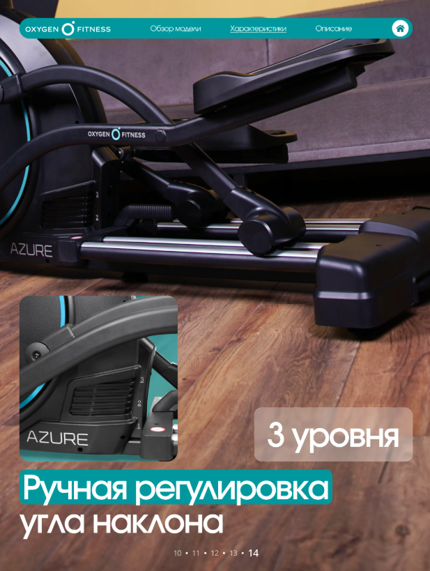 OXYGEN FITNESS AZURE — высокотехнологичный эллиптический тренажёр для домашних тренировок продвинутого уровня. Модель ориентирована на пользователей, которым важна длина шага, точная настройка нагрузки, работа по пульсу и расширенная аналитика тренировки. AZURE сочетает в себе эргономику клубного оборудования и функциональность, адаптированную для комфортного использования дома. Тренажёр построен на высокопрочной раме с антикоррозийной обработкой и двухслойной покраской, что обеспечивает устойчивость и долговечность конструкции. Корпус выполнен из ударопрочного полистирола HIPS, рассчитанного на длительную эксплуатацию. Ключевые особенности движения: • Инерционный вес маховика 30 кг (BioFusion™) при реальном весе 10 кг — ровный, стабильный и тихий ход. • Длина шага 540 мм — максимально естественная траектория, близкая к беговой, подходит пользователям разного роста. • Минимальное расстояние между педалями — 70 мм, что снижает нагрузку на колени и тазобедренные суставы. • Дисковый шатун — повышенная надёжность и точность передачи усилия. • Ручная регулировка угла наклона (3 уровня) позволяет смещать акцент нагрузки и разнообразить тренировочный процесс. Антискользящие педали увеличенного размера обеспечивают уверенную фиксацию стопы даже при интенсивной работе. AZURE использует электромагнитную систему нагружения с 16 уровнями сопротивления, регулируемыми электронно. Это обеспечивает точную и плавную настройку нагрузки под любые цели — от восстановительных тренировок до интенсивной кардиоработы. Тренажёр оснащён современной TFT-консолью с расширенным набором показателей: • время, скорость, дистанция, • калории, пульс, уровень нагрузки, • программа, Ватты, количество шагов, • общая дистанция. Программный пакет включает 21 режим тренировки: • быстрый старт и ручной режим, • 12 предустановленных программ, • 4 пульсозависимые программы, • 1 программа целевого пульса, • режим работы по Ваттам. Для контроля пульса предусмотрены сенсорные датчики на поручнях. Рукоятки двухпозиционные, с нескользящим покрытием. Дополнительные возможности: • Bluetooth-колонка для воспроизведения аудио, • подключение к интернету, • функция проекции экрана, • подставка под планшет или смартфон, • интерфейс на английском языке. OXYGEN FITNESS AZURE — эллиптический тренажёр для тех, кто хочет получить максимум от домашних кардиотренировок: продвинутую биомеханику, интеллектуальные программы и уровень комфорта, сравнимый с профессиональным фитнес-клубом.