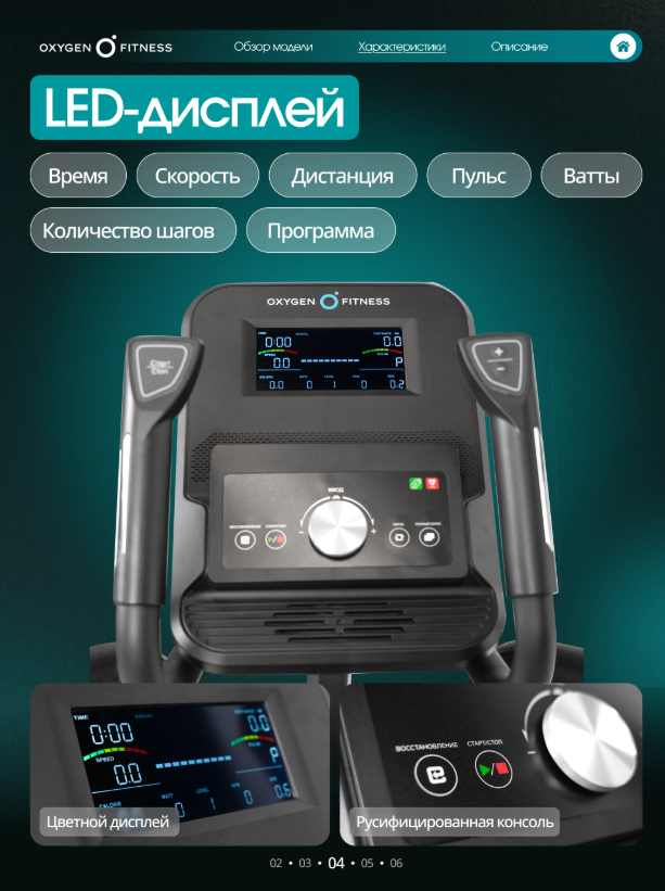 OXYGEN FITNESS MULBERRY — функциональный эллиптический тренажёр для домашних тренировок, созданный для пользователей, которым важны длинный шаг, точная электронная регулировка нагрузки и современные цифровые возможности. Модель ориентирована на регулярные кардиотренировки, работу над выносливостью и контролируемые занятия по пульсу, сочетая комфорт движения с интерактивными тренировочными форматами. Тренажёр построен на высокопрочной раме с антикоррозийной обработкой и двухслойной покраской, что обеспечивает устойчивость, надёжность и длительный срок службы. Ключевые параметры движения: • Длина шага 530 мм — близкая к естественной беговой траектории, подходит пользователям разного роста. • Минимальное расстояние между педалями — 62 мм, что снижает нагрузку на коленные и тазобедренные суставы. • Трёхкомпонентный шатун — повышенная прочность и стабильность педального узла. • Инерционный вес маховика 8 кг обеспечивает плавный и равномерный ход без рывков. Увеличенные антискользящие педали гарантируют надёжную фиксацию стопы даже при интенсивной работе, а двухпозиционные нескользящие рукоятки позволяют задействовать мышцы верхней части тела. OXYGEN FITNESS MULBERRY оснащён электромагнитной системой нагружения с 16 уровнями сопротивления, регулируемыми электронно. Такая система обеспечивает точную настройку интенсивности и плавное изменение нагрузки во время тренировки. Цветная LED-консоль отображает расширенный набор параметров: • время, скорость, дистанцию, • калории, пульс, • программу, Ватты, • жироанализатор, • количество шагов. Программный пакет включает 22 режима тренировок: • быстрый старт и ручной режим, • 10 предустановленных программ, • 4 пульсозависимые программы, • 4 пользовательские программы, • режим работы по Ваттам, • жироанализатор. Для более точного контроля пульса предусмотрена возможность подключения Bluetooth-кардиодатчика (приобретается отдельно). Тренажёр поддерживает Bluetooth-подключение к популярным приложениям Kinomap™ и Zwift™ с интерактивным уровнем интеграции, что делает тренировки более вовлекающими и разнообразными. Интерфейс доступен на русском и английском языках. Для удобства пользователя предусмотрены: • подставка под планшет или смартфон, • подставка для бутылки, • удлинённый сетевой шнур 4 м, • транспортировочные ролики и компенсаторы неровностей пола. OXYGEN FITNESS MULBERRY — сбалансированный эллиптический тренажёр для дома, сочетающий продуманную биомеханику, современные технологии и комфорт, необходимый для регулярных и эффективных кардиотренировок.