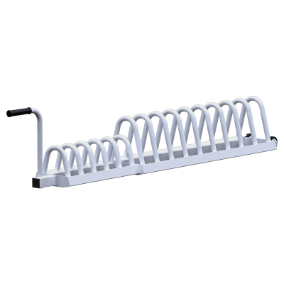 Наличие колес и рукоятки позволяет легко перемещать стойку без необходимости переносить диски вручную, повышая удобство и безопасность эксплуатации.