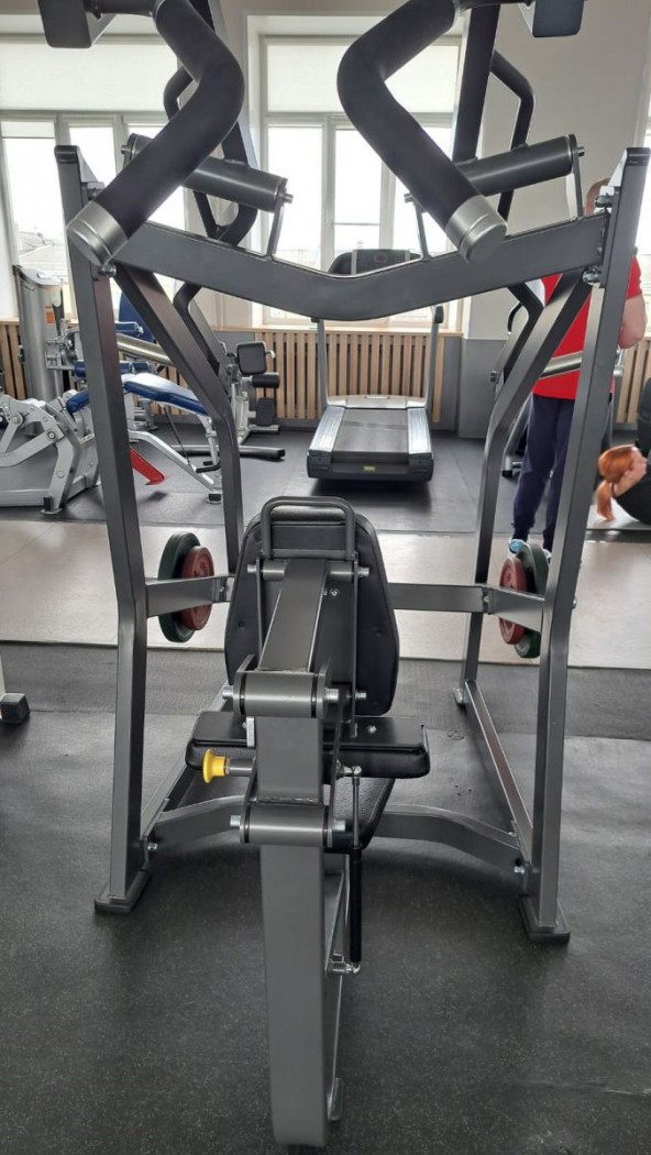 Тренажёр оснащён регулируемым по высоте сиденьем и регулируемым упором для груди, что позволяет точно подстроить положение спортсмена под индивидуальные параметры тела. Это повышает стабильность во время упражнения и исключает риск неправильной амплитуды движений.