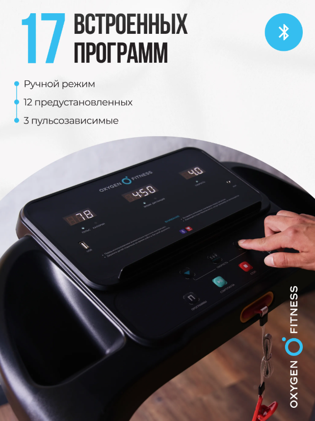 Беговая дорожка OXYGEN FITNESS NIOBI — идеальный тренажер для тех, кто хочет поддерживать физическую форму, не выходя из дома. Эта электрическая беговая дорожка оснащена мощным двигателем Fuji Electric мощностью 1.75 л.с. (пиковая мощность 2.7 л.с.), который позволяет развивать скорость до 12 км/ч. Благодаря высокопрочной раме с антикоррозийной обработкой и двухслойной покраской, она обеспечивает надежность и долговечность в использовании. Дорожка имеет беговое полотно длиной 105 см и шириной 39 см, что обеспечивает достаточное пространство для комфортного бега. Система амортизации HighSoft Zone™ снижает нагрузку на суставы, а ручная регулировка угла наклона позволяет варьировать интенсивность тренировок. Для вашего удобства предусмотрены сенсорные датчики на поручнях для измерения пульса и кнопки управления стартом и скоростью. Консоль OXYGEN FITNESS NIOBI оборудована тремя LED-дисплеями с белой индикацией, на которых отображаются важные параметры: время, скорость, дистанция, калории, пульс и программы. Дорожка предлагает 17 различных программ, включая ручной режим, 12 предустановленных и 3 пульсозависимые, что позволяет каждому подобрать оптимальный вариант для тренировок. Интуитивно понятный интерфейс на русском и английском языках делает использование тренажера простым и удобным. С OXYGEN FITNESS NIOBI ваш домашний фитнес станет не только более доступным, но и эффективным! Ключевые преимущества XYGEN FITNESS NIOBI: • ударопрочный пластик HIPS и высокопрочная рама с антикоррозийной обработкой для долговечности; • система амортизации HighSoft Zone™ для комфортных тренировок; • 17 программ тренировок для разнообразия и эффективности подходов.