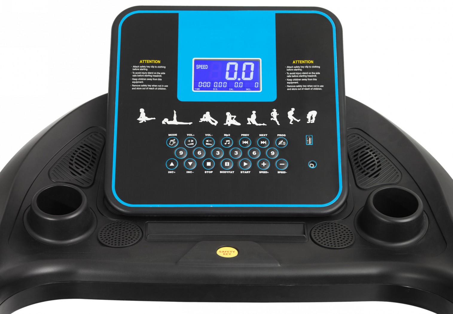 5″ дисплей с синей подсветкой – четкое отображение скорости, дистанции, времени, расхода калорий и реального пульса в режиме реального времени (встроенный пульсометр)
